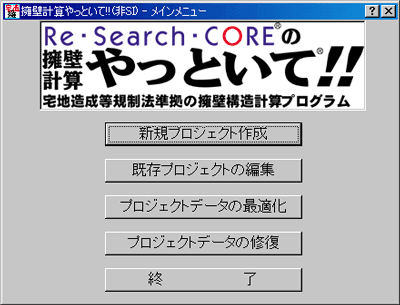 このメニュー画面より「新規プロジェクト作成」「既存プロジェクトの編集」に進みます。