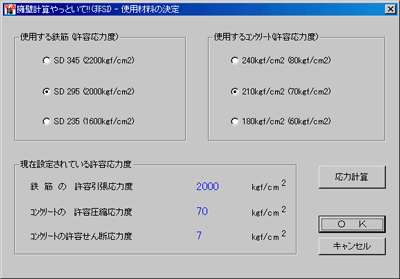 ここで擁壁に使用する鉄筋とコンクリートの種類を選択することができます。
