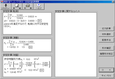 安定計算の概要が表示されます。