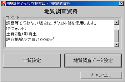 地質調査資料や、土に関係する基本的な設定をする画面です。